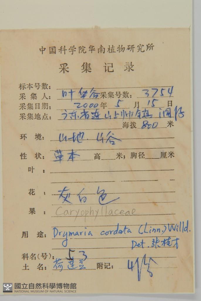 Collector's No.:葉?3754