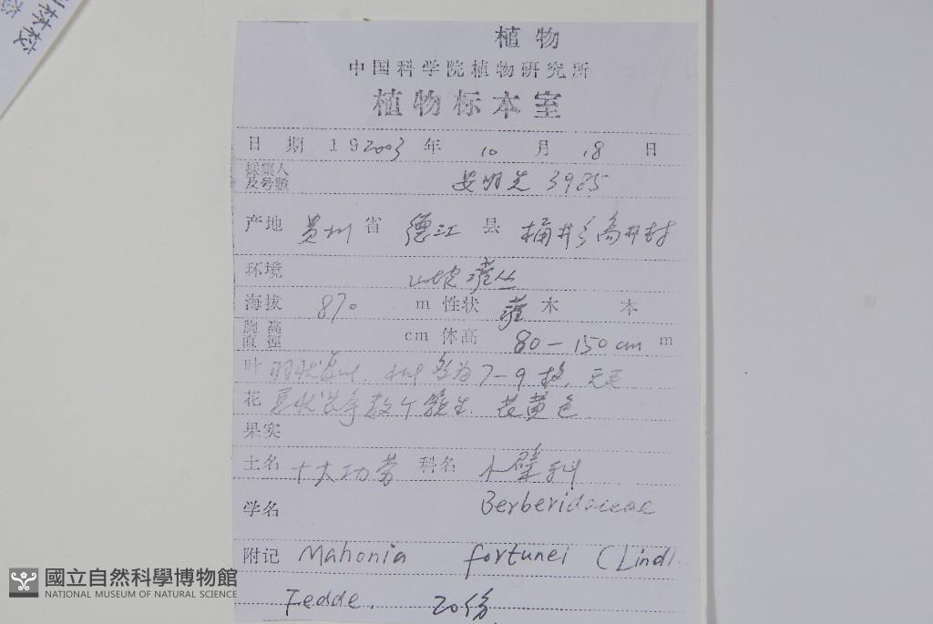 Scientific Name: Mahonia fortunei Fedde