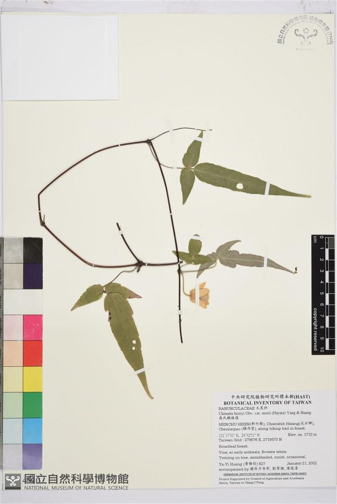 Scientific Name: Clematis henryi Oliv. var. morii (Hayata) T.Y.A.Yang & T.C.Huang