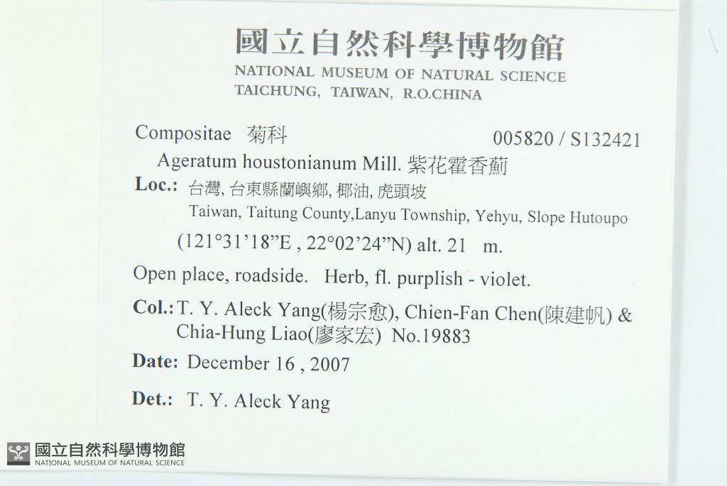 Collector:T. Y. A. Yang, G. P. Hsieh, C. L. Chen & C. F. Chen
