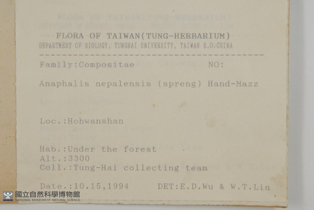 Collector:Tunghai collesting team