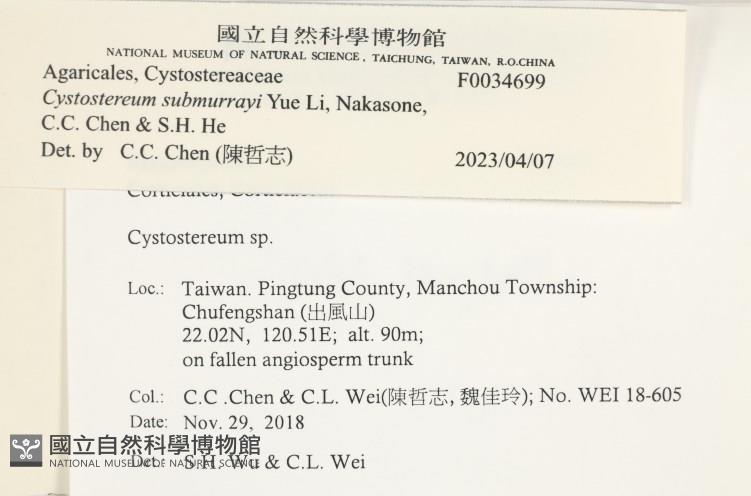Cystostereum submurrayi Yue Li, Nakasone, C.C. Chen & S.H. He