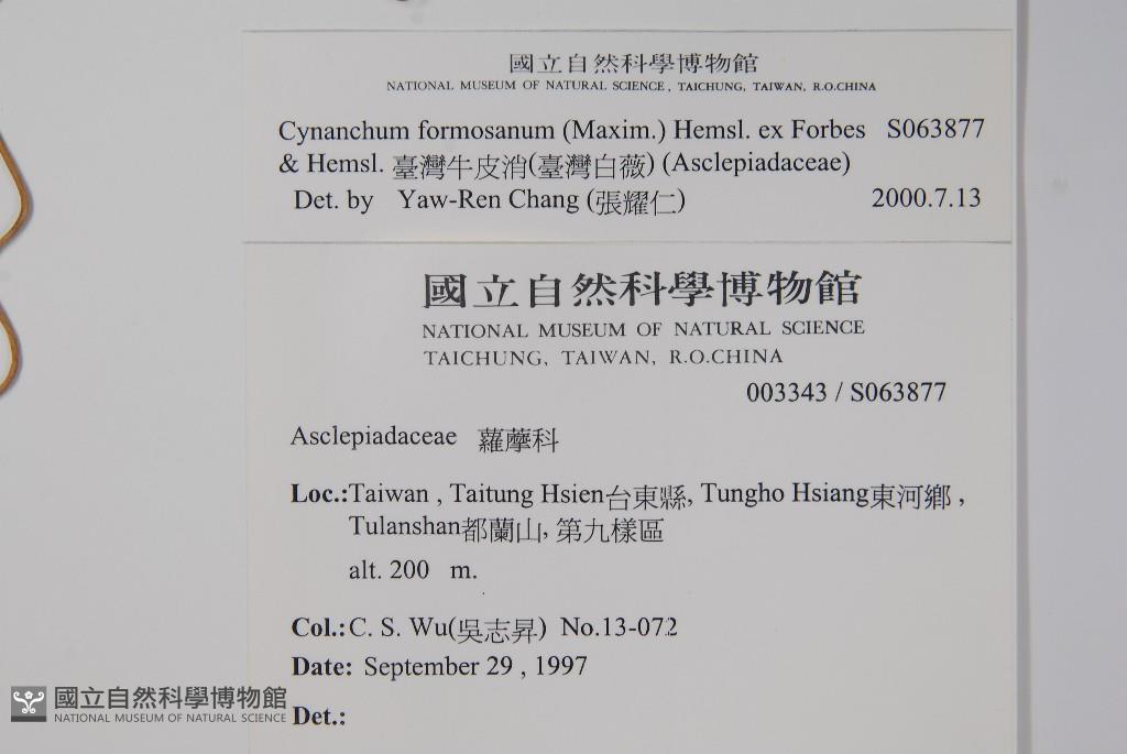 Scientific Name: Cynanchum formosanum (Maxim.) Hemsl. ex Forbes & Hemsl.