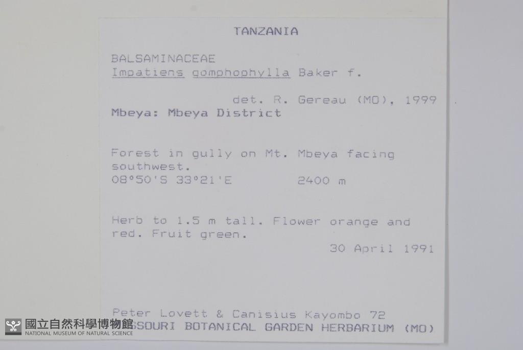 Scientific Name: Impatiens gomphophylla Baker
