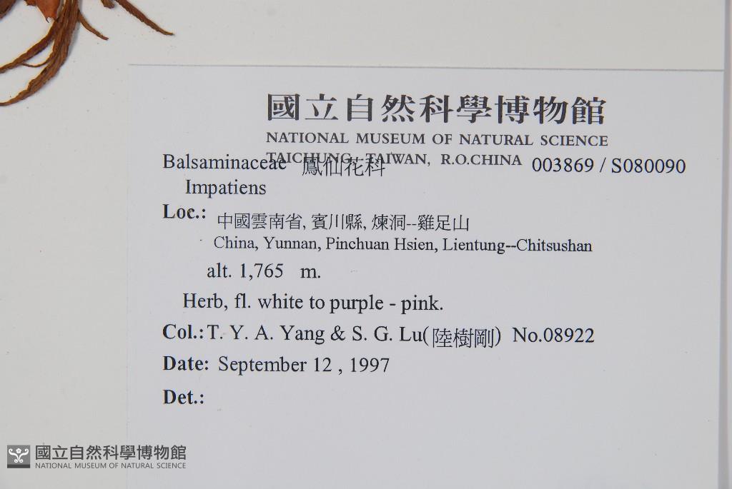 Collector:T. Y. A. Yang & S. G. Lu(陸樹剛)