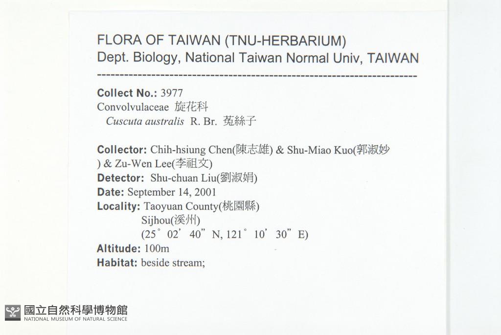 Collector:Chih-Hsiung Chen (陳志雄), Shu-Maio Kuo (郭淑妙), & Zu-Wen Lee(李祖文)