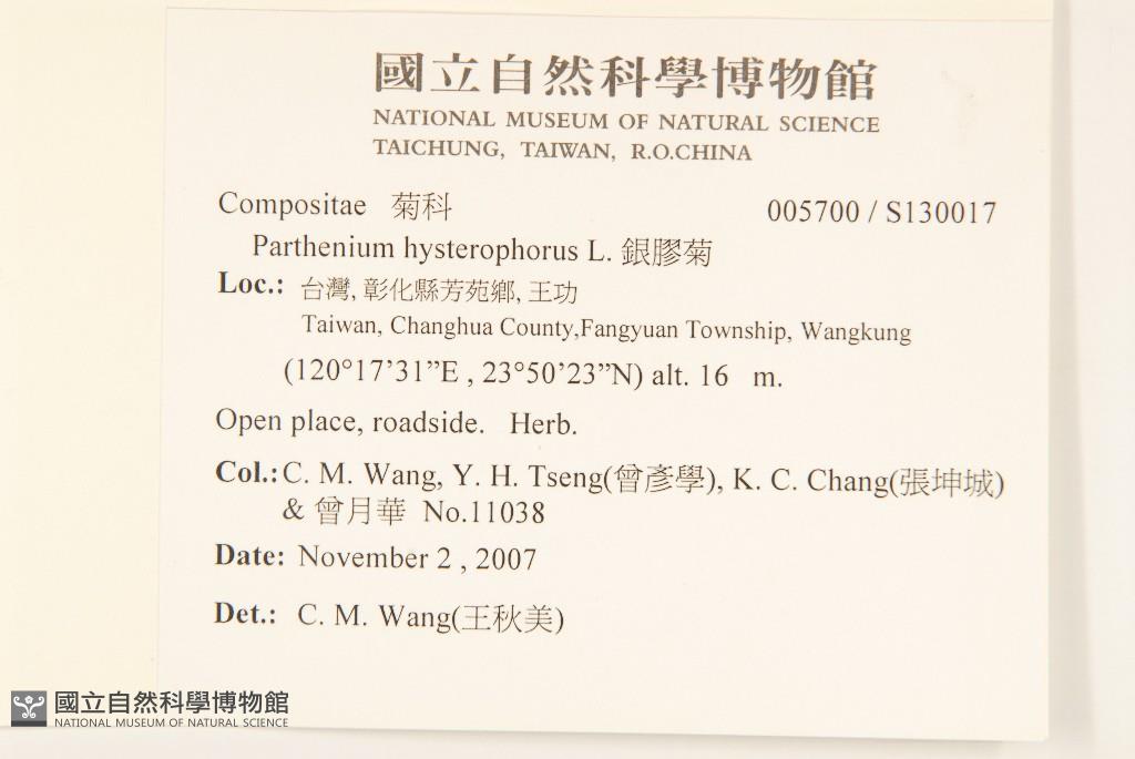 Collector:C. M. Wang, Y. H. Tseng(曾彥學), K. C. Chang(張坤城) & 曾月華