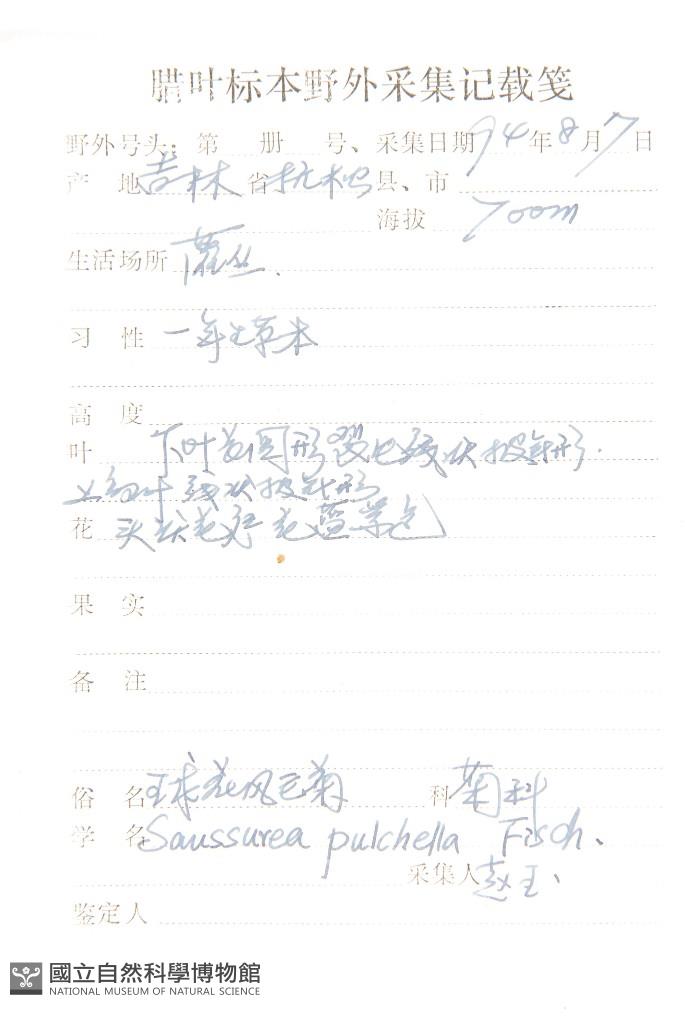 Scientific Name: Saussurea pulchella Fisch. ex DC.