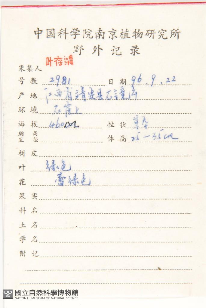 Collector:C. S. Ye(葉存粟)