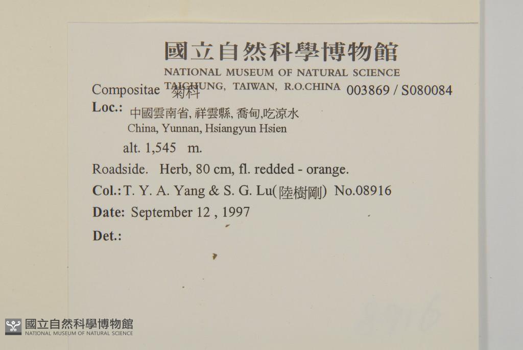 Collector:T. Y. A. Yang & S. G. Lu(陸樹剛)