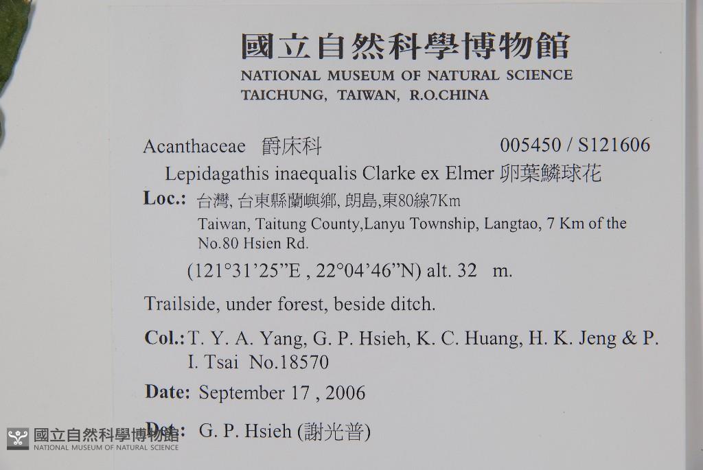 Collector:T. Y. A. Yang, G. P. Hsieh, K. C. Huang, H. K. Jeng & P. I. Tsai