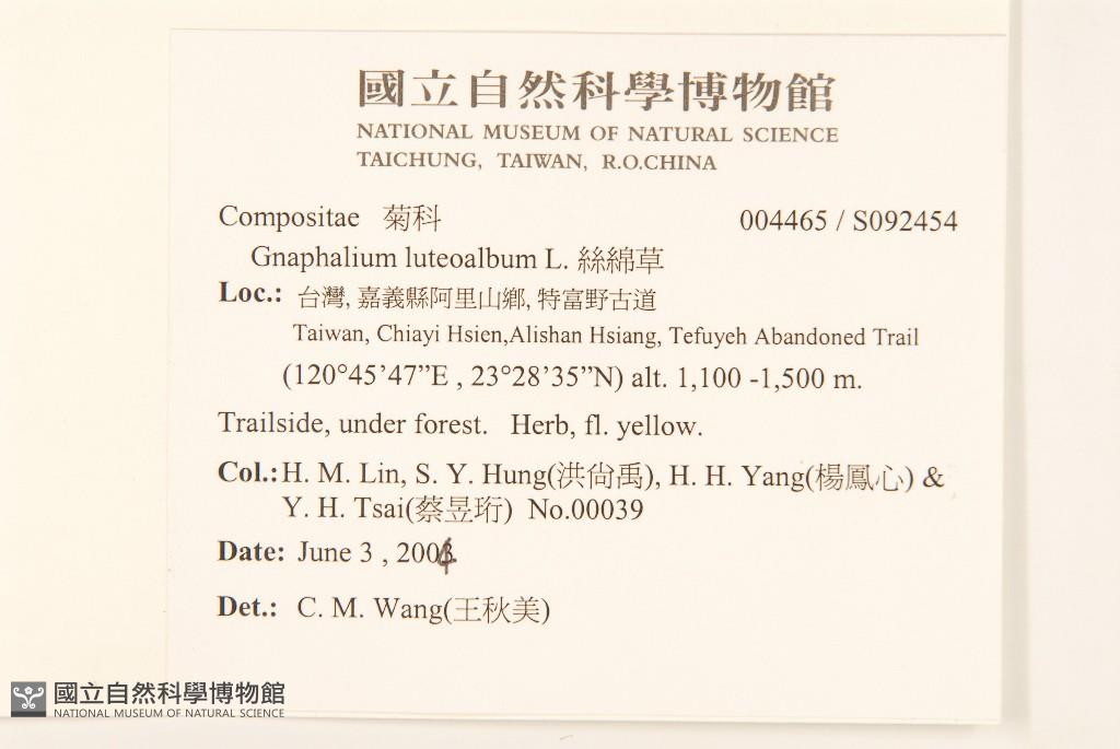 Collector:H. M. Lin, S. Y. Hung(洪尚禹), H. H. Yang(楊鳳心) & Y. H. Tsai(蔡昱珩)