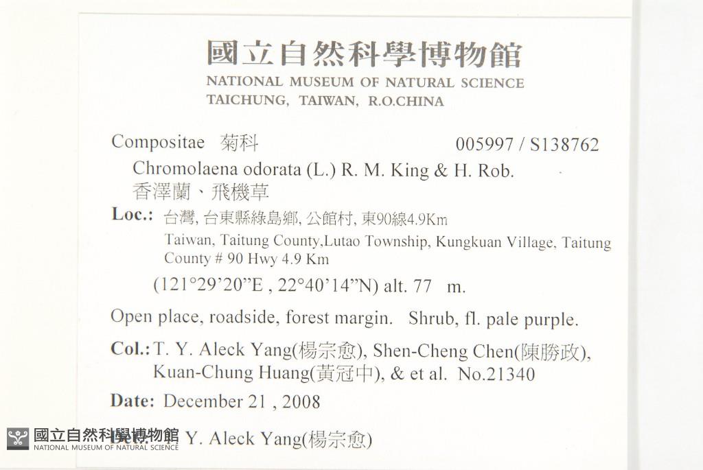 Collector:T. Y. Aleck Yang(楊宗愈), Shen-Cheng Chen(陳勝政), Kuan-Chung Huang(黃冠中), & et al.