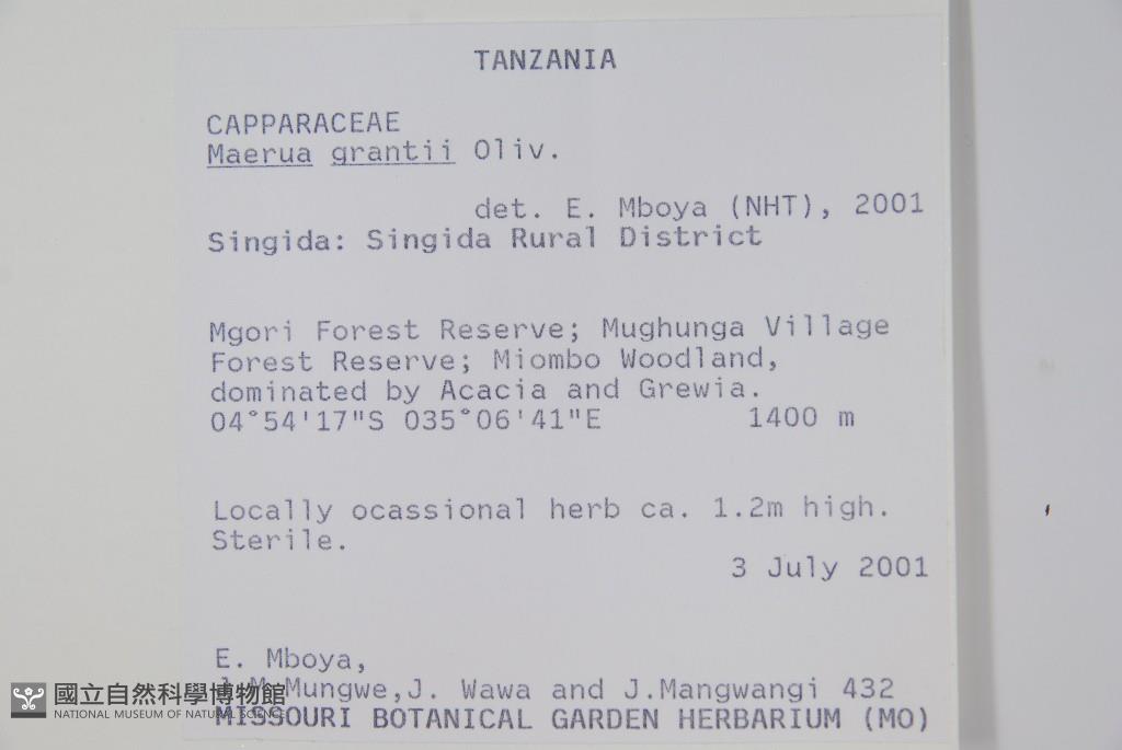 Collector:E. Mboya, J. M. Mungwe, J. Wawa & J. Mangwangi