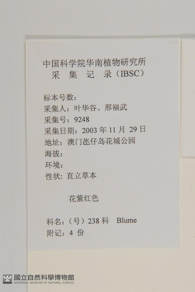 Collector:葉華谷、邢福武