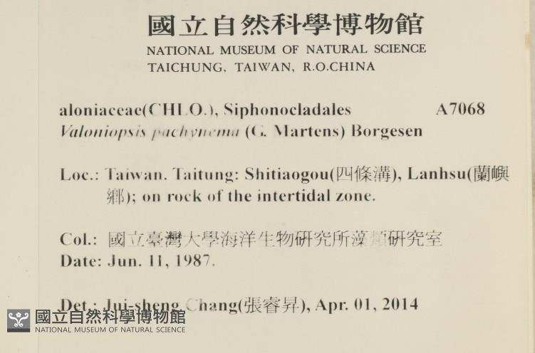 Collector:國立臺灣大學海洋生物研究所藻類研究室