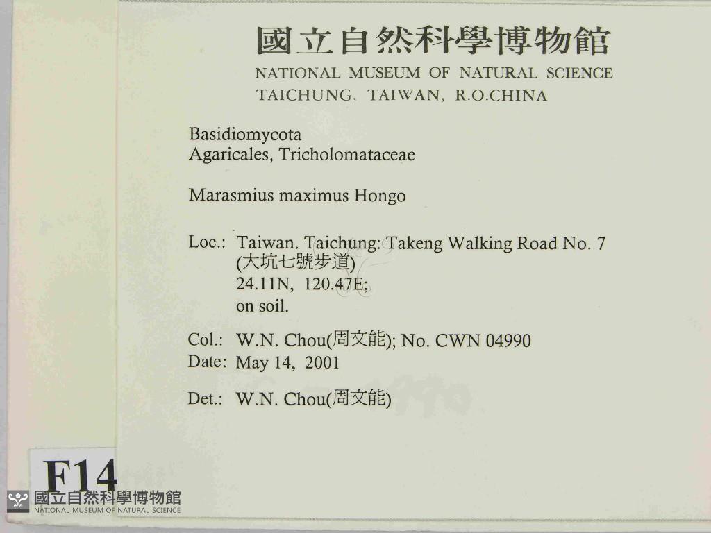 Marasmius maximus Hongo