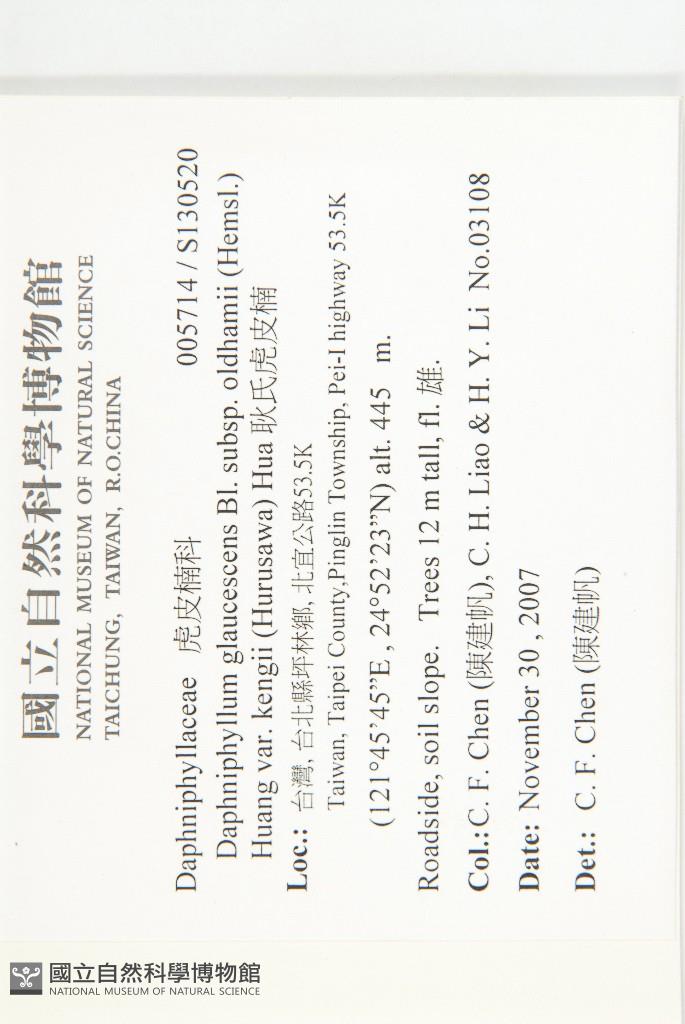 Collector:C. F. Chen (陳建帆), C. H. Liao & H. Y. Li