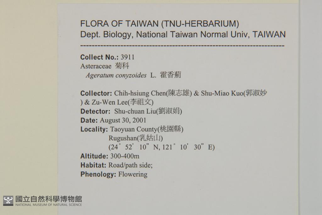 Collector:Chih-Hsiung Chen (陳志雄), Shu-Maio Kuo (郭淑妙), & Zu-Wen Lee(李祖文)