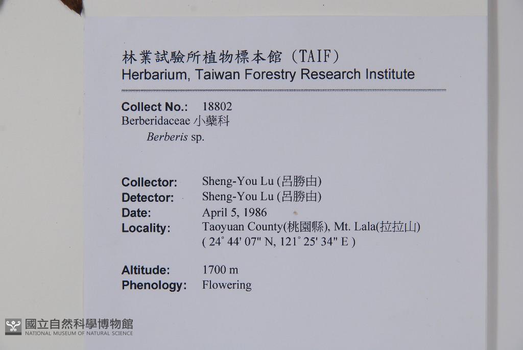Scientific Name: Berberis hayatana Mizush.