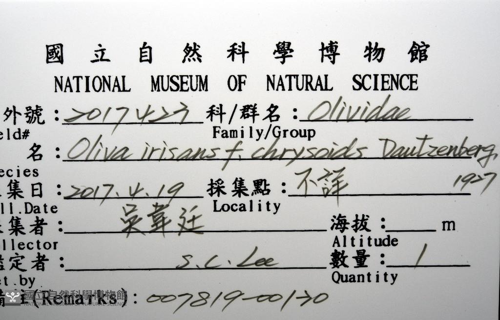 Scientific Name:Oliva irisans f. chrysoides Dautzenberg,1927