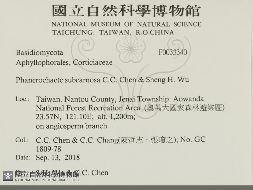 Phanerochaete subcarnosa C.C. Chen, Sheng H. Wu & S.H. He
