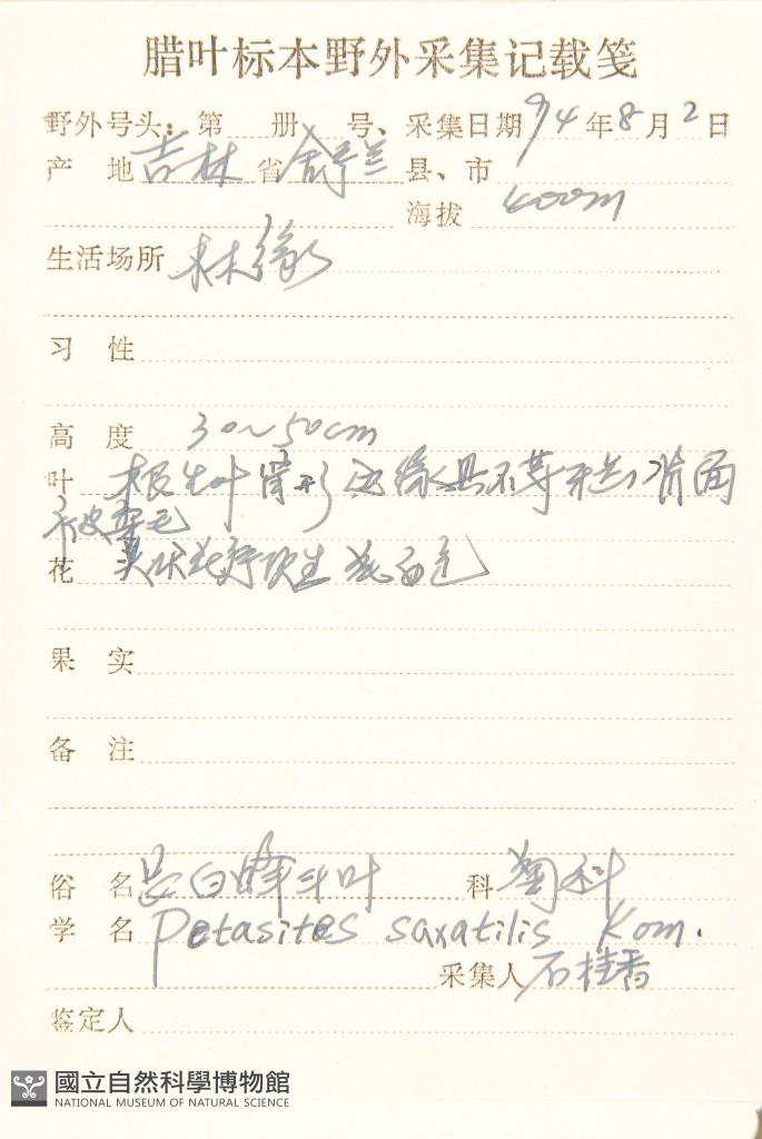 Scientific Name: Petasites saxatilis (Turcz.) Kom.