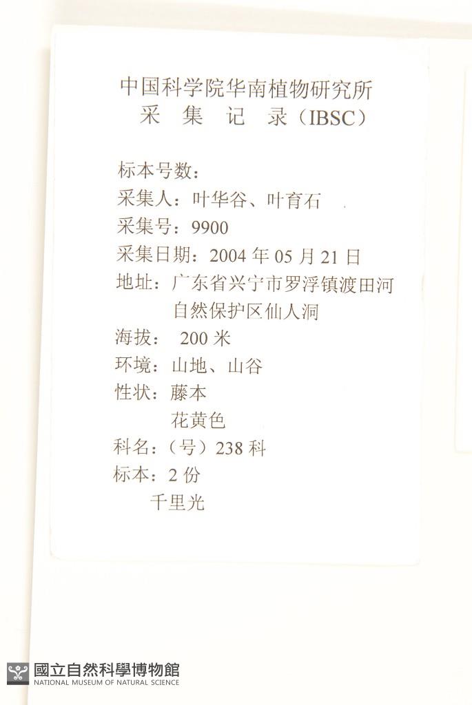 Locality:Xingning County 渡田河自然保護區仙人洞