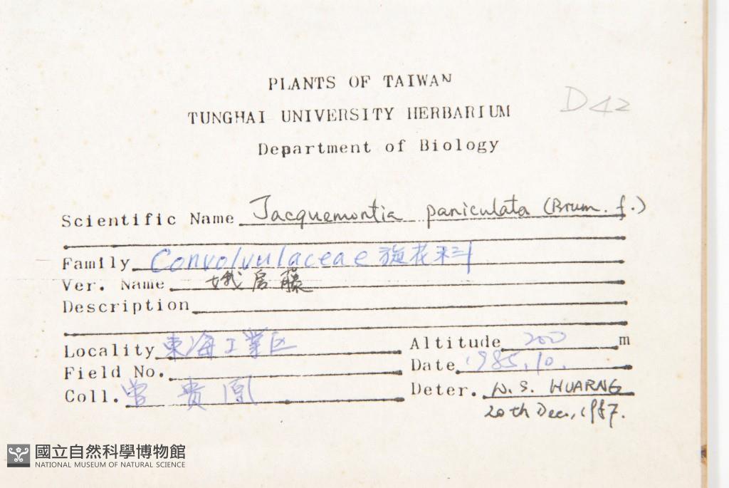 Department: Biology Department / Vascular Plants Division