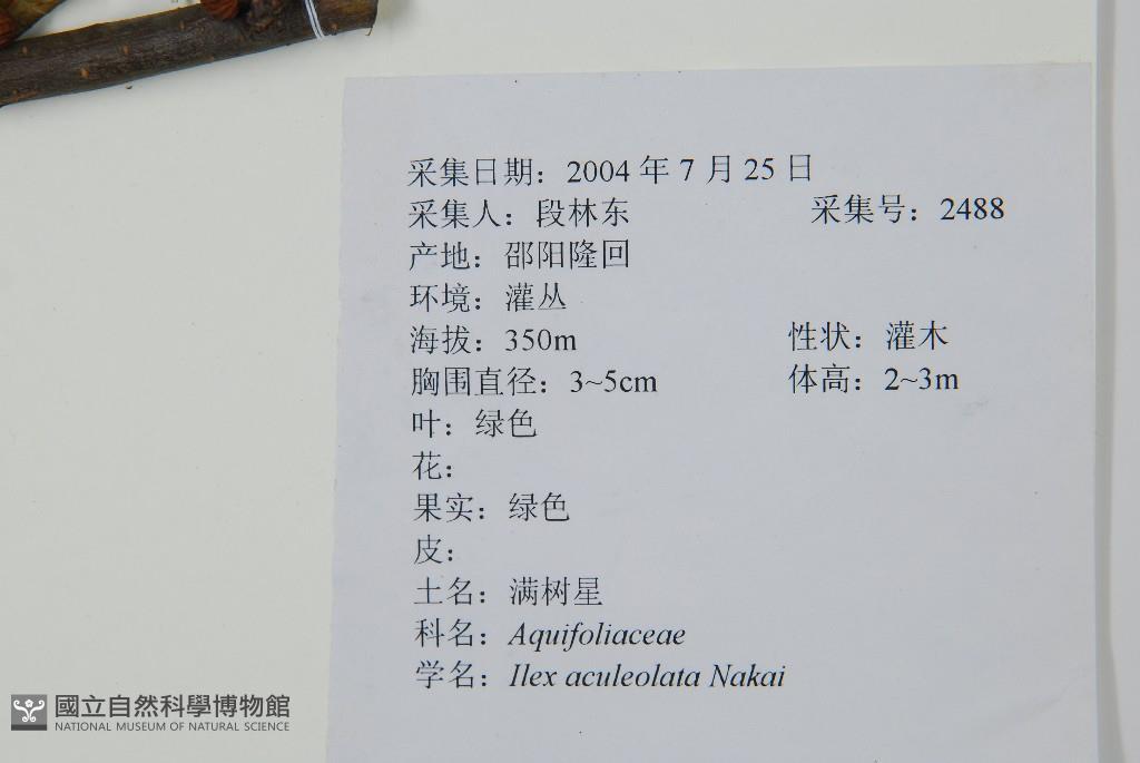 Scientific Name: Ilex aculeolata Nakai