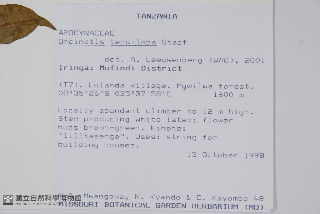 Scientific Name: Oncinotis tenuiloba Stapf