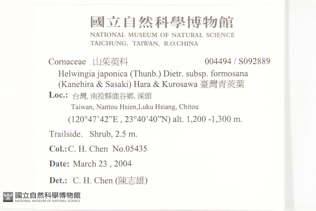 Scientific Name: Helwingia japonica (Thunb.) Dietr. subsp. formosana (Kanehira & Sasaki) Hara & Kurosawa