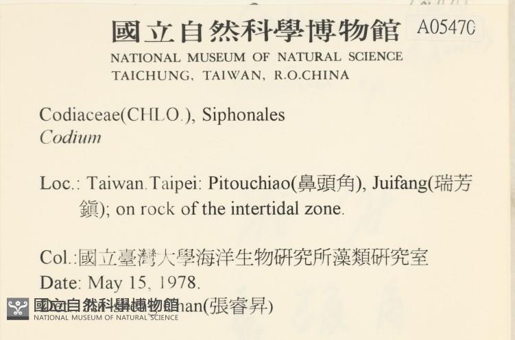 Collector:國立臺灣大學海洋生物研究所藻類研究室