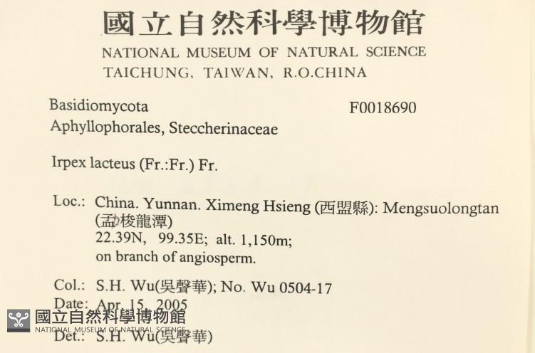 Phylum:Incertae sedis,Agaricomycetes ,Polyporales ,Irpicaceae
