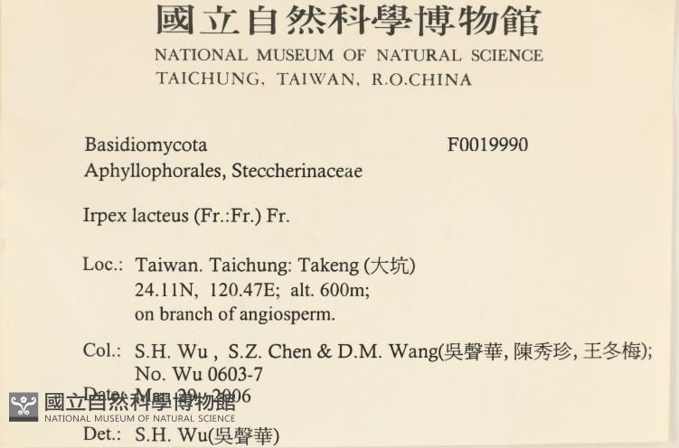 Phylum:Incertae sedis,Agaricomycetes ,Polyporales ,Irpicaceae