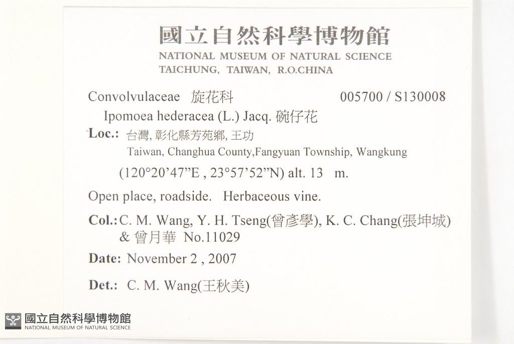 Collector:C. M. Wang, Y. H. Tseng(曾彥學), K. C. Chang(張坤城) & 曾月華
