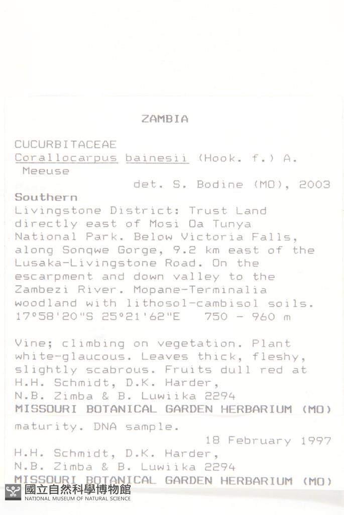 Collector:H. H. Schmidt, D. K. Harder, N. B. Zimba & B. Luwiika