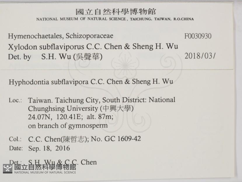 Xylodon subflaviporus C.C. Chen & Sheng H. Wu