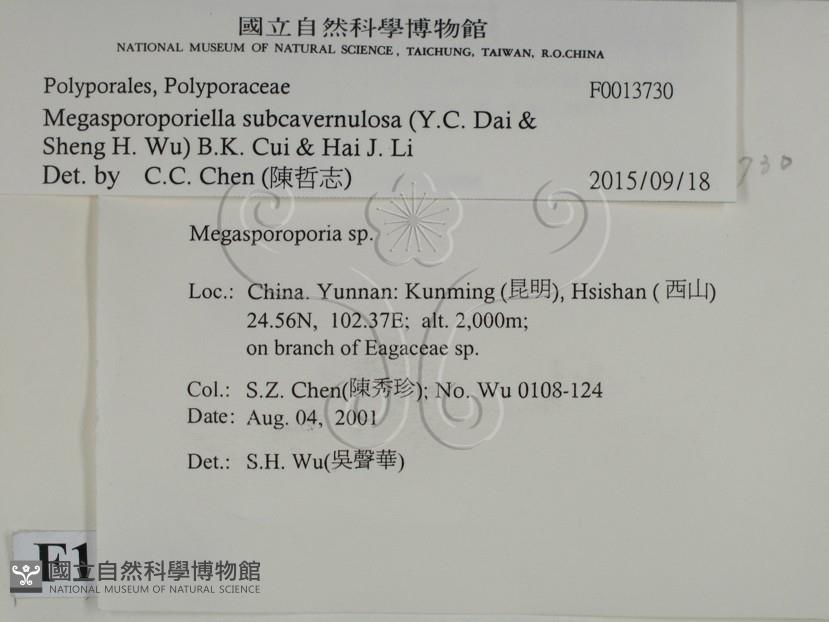 Megasporoporiella subcavernulosa (Y.C. Dai & Sheng H. Wu) B.K. Cui & Hai J. Li
