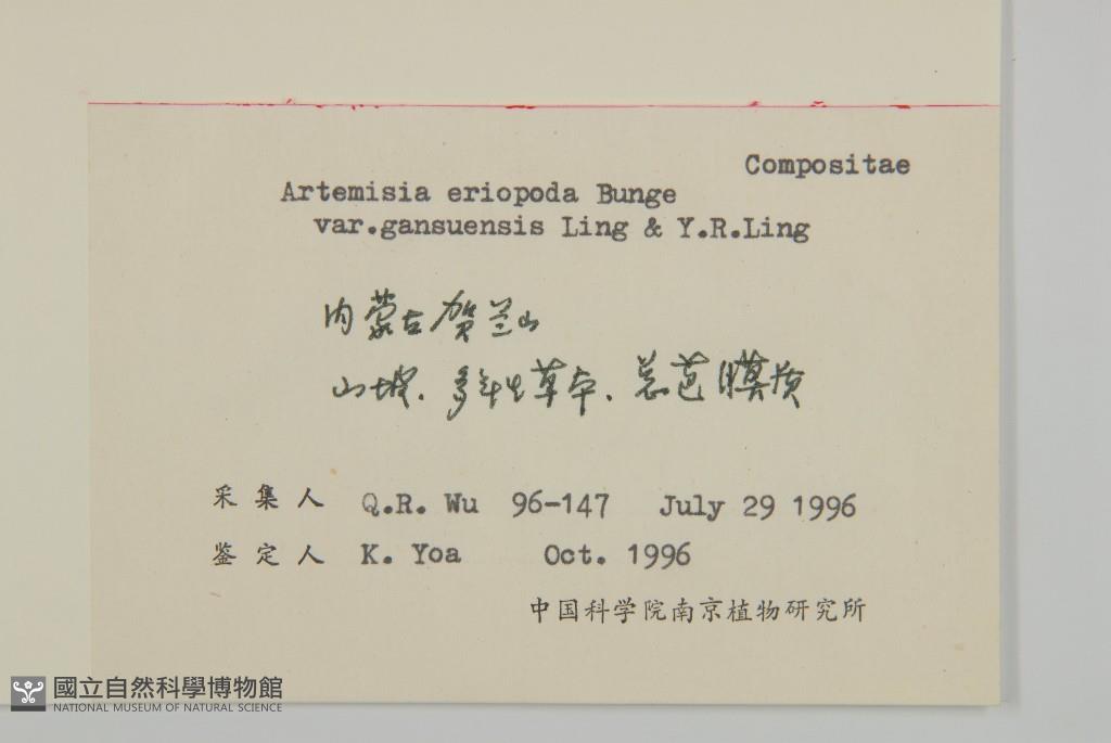 Scientific Name: Artemisia eriopoda Bunge var. gansuensis Ling & Y. R. Ling