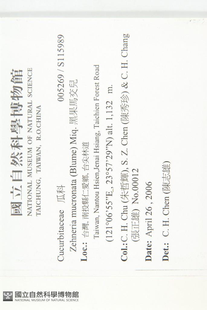 Collector:C. H. Chu (朱哲輝), S. Z. Chen (陳秀珍) & C. H. Chang (張正雄)