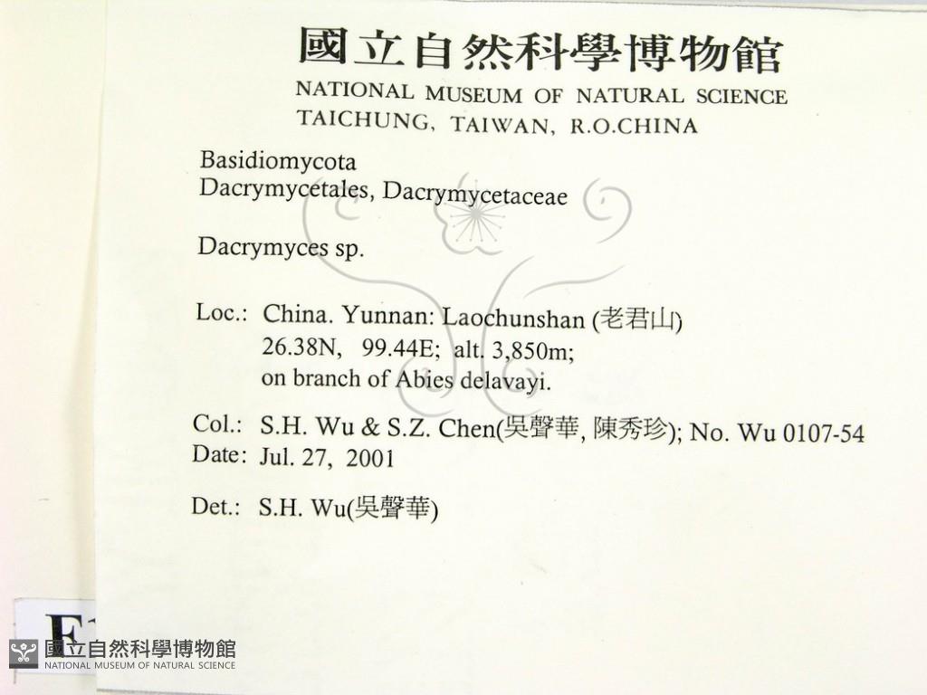 Phylum:Incertae sedis,Dacrymycetes ,Dacrymycetales ,Dacrymycetaceae