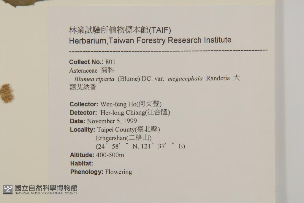 Scientific Name: Blumea riparia (Blume) DC. var. megacephala Randeria
