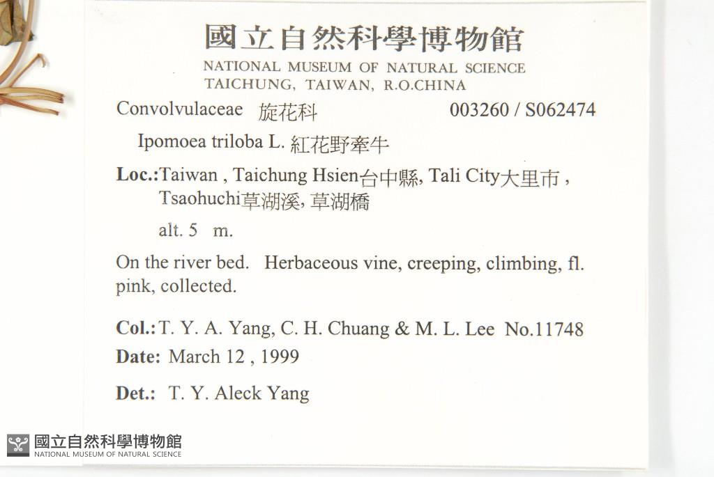 Collector:T. Y. A. Yang, C. H. Chuang & M. L. Lee