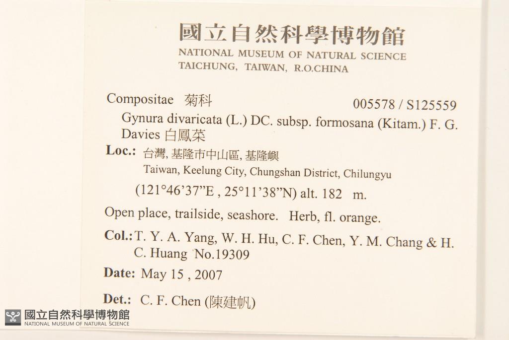 Scientific Name: Gynura divaricata (L.) DC. subsp. formosana (Kitam.) F. G. Davies