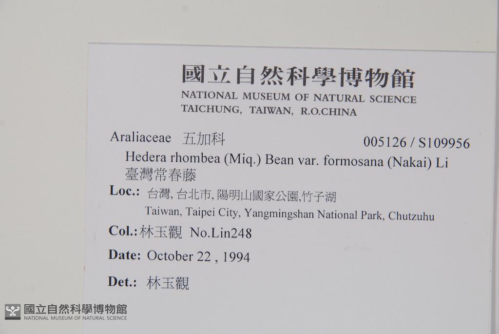 Scientific Name: Hedera rhombea (Miq.) Bean var. formosana (Nakai) Li