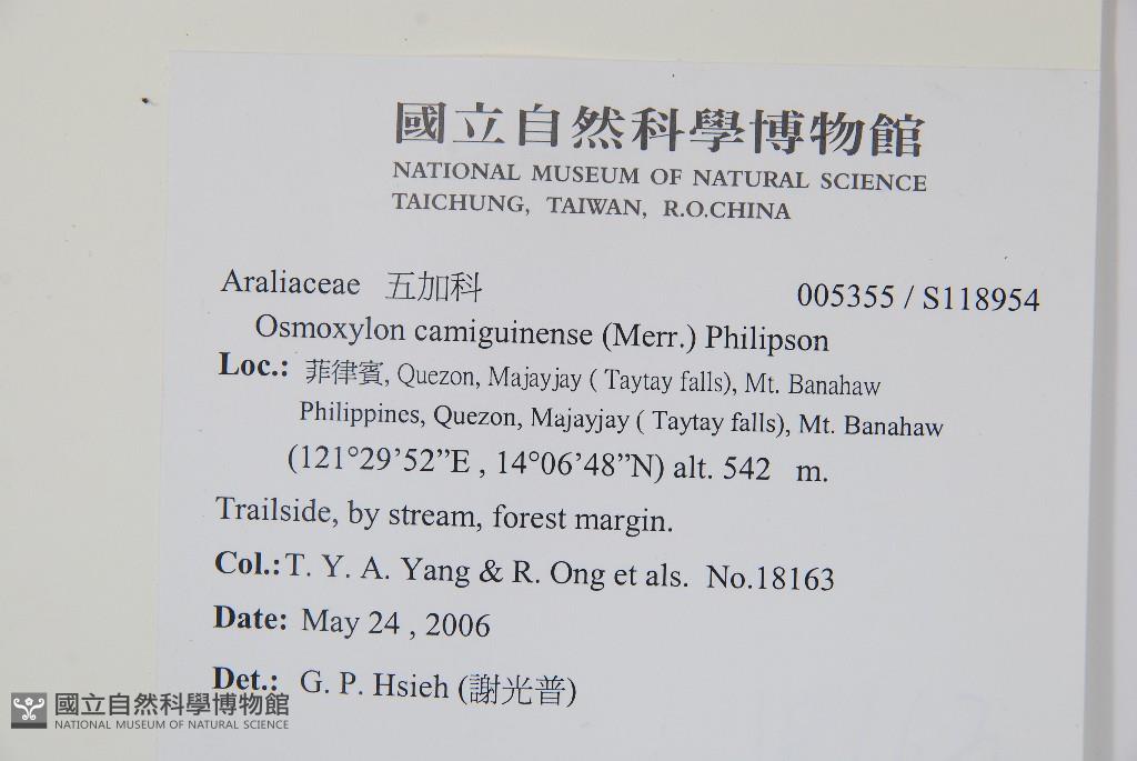 Scientific Name: Osmoxylon camiguinense (Merr.) Philipson