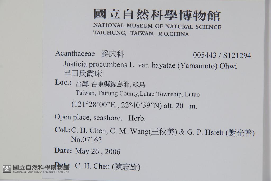 Scientific Name: Justicia procumbens L. var. hayatae (Yamamoto) Ohwi