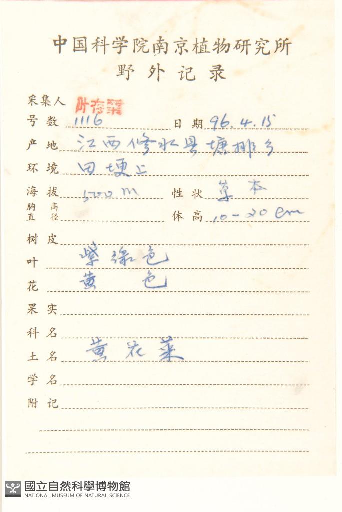 Collector:C. S. Ye(葉存粟)