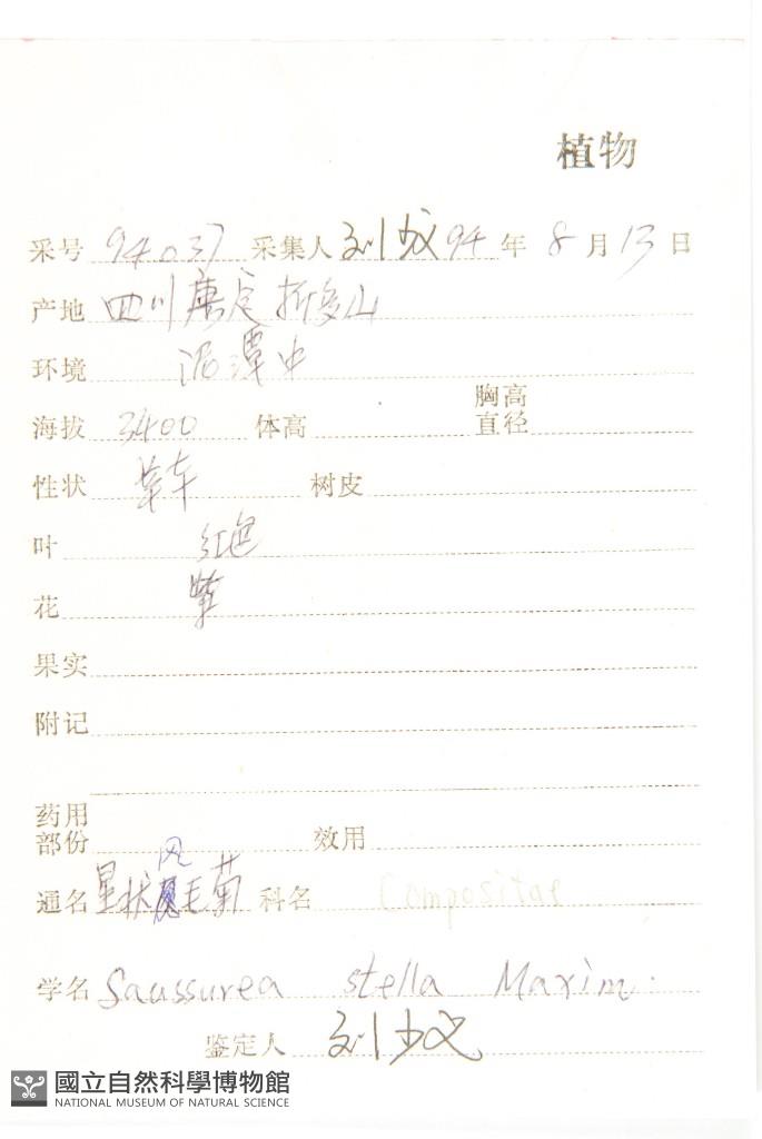 Scientific Name: Saussurea stella Maxim.